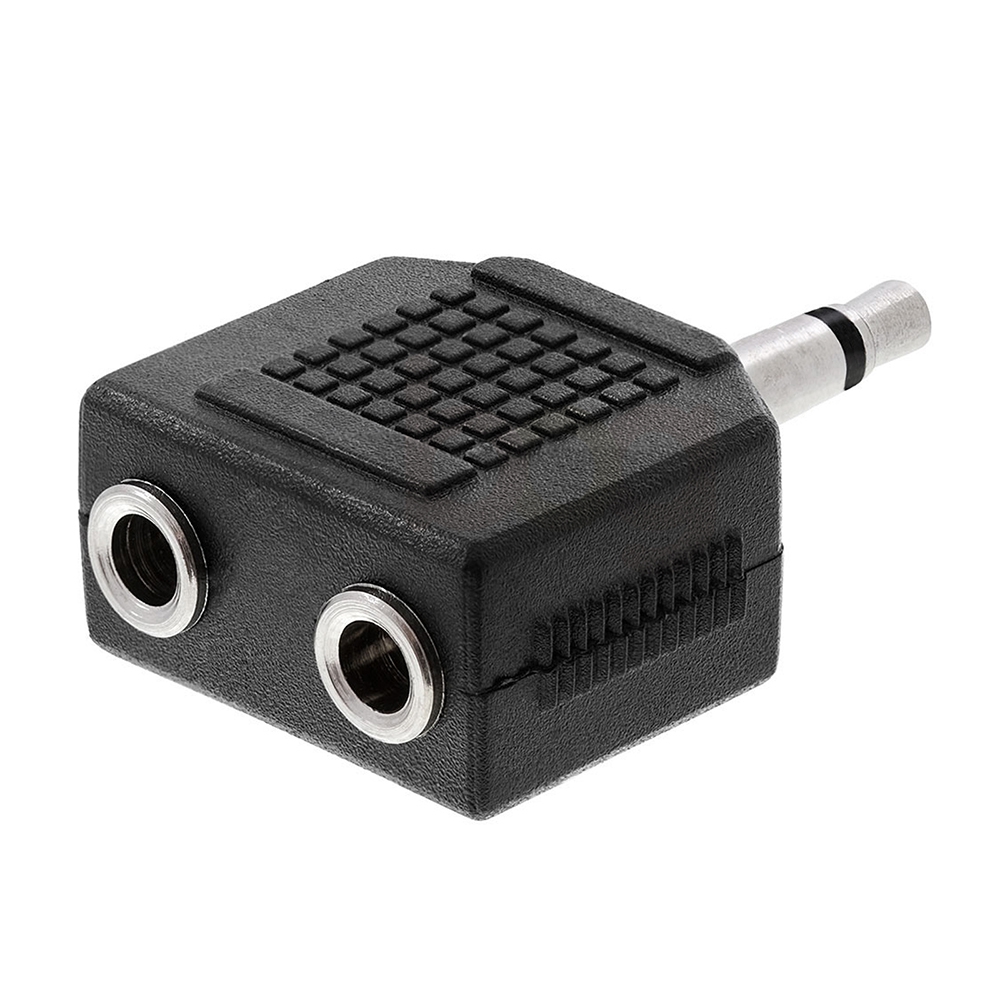 3.5mm Mono Plug to 2x3.5mm Stereo Jack Adapter This 3.5mm Mono Plug to 2x3.5mm Stereo Jack Adapter converts two 3.5mm Stereo Plugs to single 3.5mm Mono Plug. With its full molded construction, this splitter will split the audio signal without a loss of quality. Black molded plastic construction Nickel-plated contacts Connector 1: 3.5mm Mono Plug Connector 2: 2x3.5mm Stereo Jack Use with PC, stereo, MP3 players External Length / Height: 35mm Body width: 20mm
