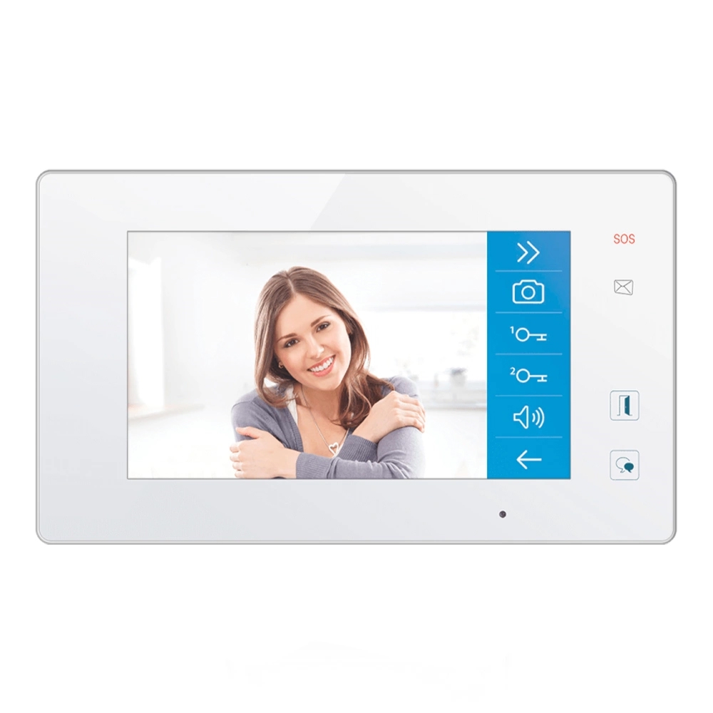 7inch Wi-Fi Monitor for the 2-Wire Intercom SystemThis modern and stylish 7-inch touch screen monitor provides a reliable way to see your visitors through the video door phone system and talk to them when you open it. All our video intercom system sets can be extended with this extra monitor. You can make the intercom system even more complete by installing an extra monitor.Features:Surface-mounted 7inch TFT Color Touch ScreenTwo sensor buttons with a raised dot for the visually impairedSimple and intuitive touch screen menuHands-free Communication'Do Not Disturb' function Call divert to smartphoneMulti-language menu (customized)Pan, tilt, and zoom when using FE-type Entry PanelsCompatible with all our 2-wire system modelsSupports multiple monitors in each apartmentIntercom options: Monitor to Monitor, Guard Station call, and apartment-wide broadcastRecord snapshot or video from entry panel or other cameras in monitor memory (requires a micro SC card)Connects to the internet through local WiFi and cloud-based SIP server to divert calls to the IOS/Android deviceThe mobile APP allows two-way communication, video, and door unlockApplications from 1 to 256 apartmentsSpecification:Power Supply: DC 20~28VConsumption: Standby - 0.3W, Working - 7WScreen: 7-inch digital color TFTResolution: 800*480 PixelsVideo Signal: 1Vp-p, 75Ω, CCIR standardWiring: 2 Wires (Non-Polarity)Mounting type: Surface MountDimensions: 5.2 H x 10.5 W x 0.71 D (inch)Low profile surface mount - super thin designPackage Includes:1 x 7″ Monitor (DX-47MG)
