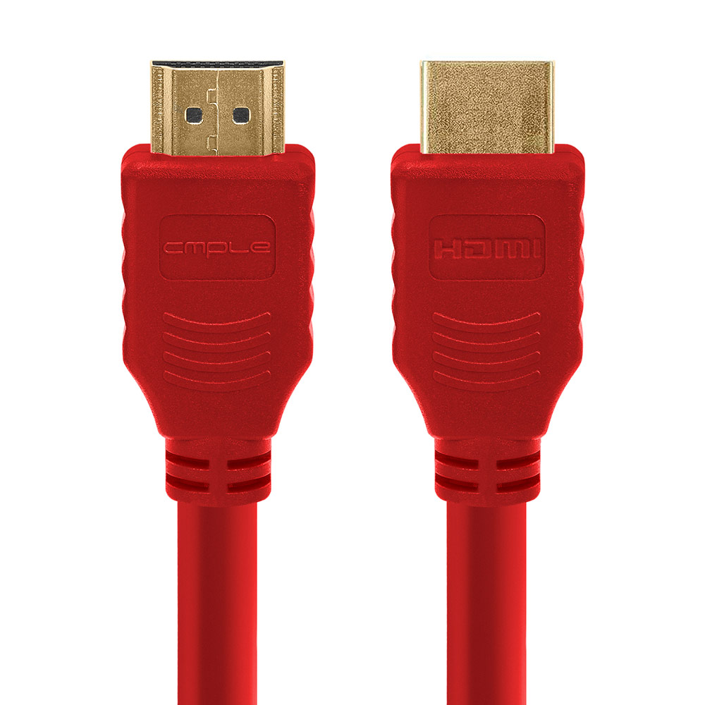 High Speed HDMI cables: Connects Game consoles: such as PlayStation 4, PS3, Xbox One; Apple TV, Fire TV and other HDMI devices to TV’s, Monitors, Displays and more. Performance: Get Vivid Colors and Ultra High-Resolution Images: Providing you high performance. Supports 3D, 4K, Full HD, 48 Bit Deep Color and Audio Return Channel (ARC) 4K x 2K Support - Enables video resolutions far beyond 1080p, supporting next-generation displays that will rival the Digital Cinema systems used in many commercial movie theatres. 4K x 2K represents resolutions of 3840x2160 and 4096x2160 Premium Quality: 3D Support - You can watch a 3D images with a single connection. Delivers high-definition video and lossless multichannel digital audio at the same time. Gold-plated connectors resist corrosion, provide durability, and improve the signal transmission Your Satisfaction Guaranteed: Our cables backed with Lifetime Warranty. Package include: 4K High Speed HDMI Cable with Ferrite Cores - 6 Feet, Red High Speed 4K HDMI Cable with Ferrite Cores Cmple High Speed HDMI Cable delivers a pure digital connection between HDMI-equipped display devices and HDMI-enabled digital video sources. Compatible with all HDMI, HDMI 2.0 devices. Cables that will drive your 4K TV/Monitor at 2160P/60 Hz (if both ports are HDMI 2.0 ports). Supports Full HD, 4K, Ultra HD, 3D, ARC, Ethernet and all other available HDMI functions so you can experience your device's true abilities. The type A Male HDMI connectors at either end plug securely into the ports on your input device, creating an instant connection. The male to male HDMI cable has a length of 6 feet, giving you enough room to maneuver it around your home or system. Ferrite Cores used to suppress EMI/RFI electronic noise on the cable by absorbing the unwanted high frequencies and dissipating them as very low-level heat. Features: Fully HDCP compliant to provide highest level of signal quality True 28AWG (Gauge) cable A superb cable with excellent audio-visual transfer properties that deliver signal without compromising purity and balance Support high-resolution digital audio signals Delivers vibrant and rich colors Ferrite cores resist radio frequency interference Gold-plated terminals ensure long-lasting, corrosion-free connections HDMI cable with Audio Return - Combines both audio and video into one cable. Supports the following resolutions: 1080p (1920 x 1080), 4K (Ultra HD 4096 x 2160) in 3D, and ARC Color: Red Length: 6 FT Your Satisfaction Guaranteed: Our cables backed with Free Lifetime Warranty and Replacement Guarantee