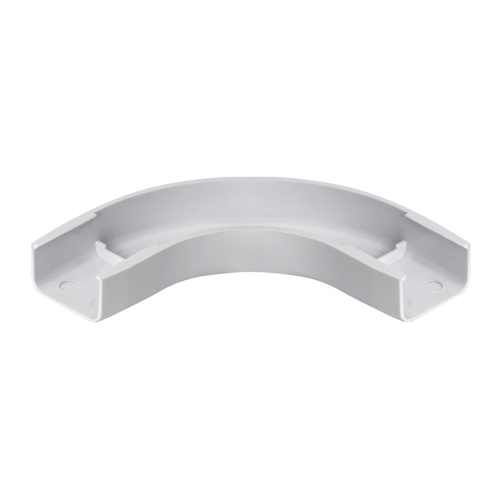 Wire Trak Flat Elbow for Raceway PVC White, 1inch W x 1/2inch H Features: Constructed of UL94VO Flame Retardant PVC Built with UV Stabilizer to prevent color fading Latex paintable surface Category 5 Bend Radius Compliant Color: white